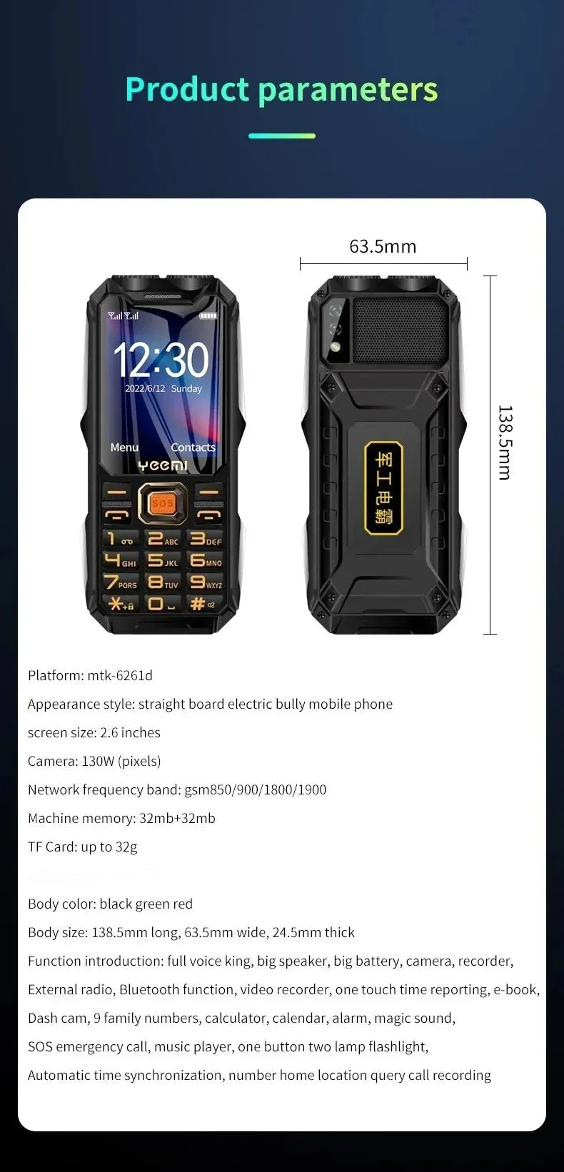 YEEMI Q8 GSM 2G teléfono resistente batería grande linterna Dual 2,4 pulgadas pantalla HD Dual SIM teléfono móvil botón grande teléfono móvil